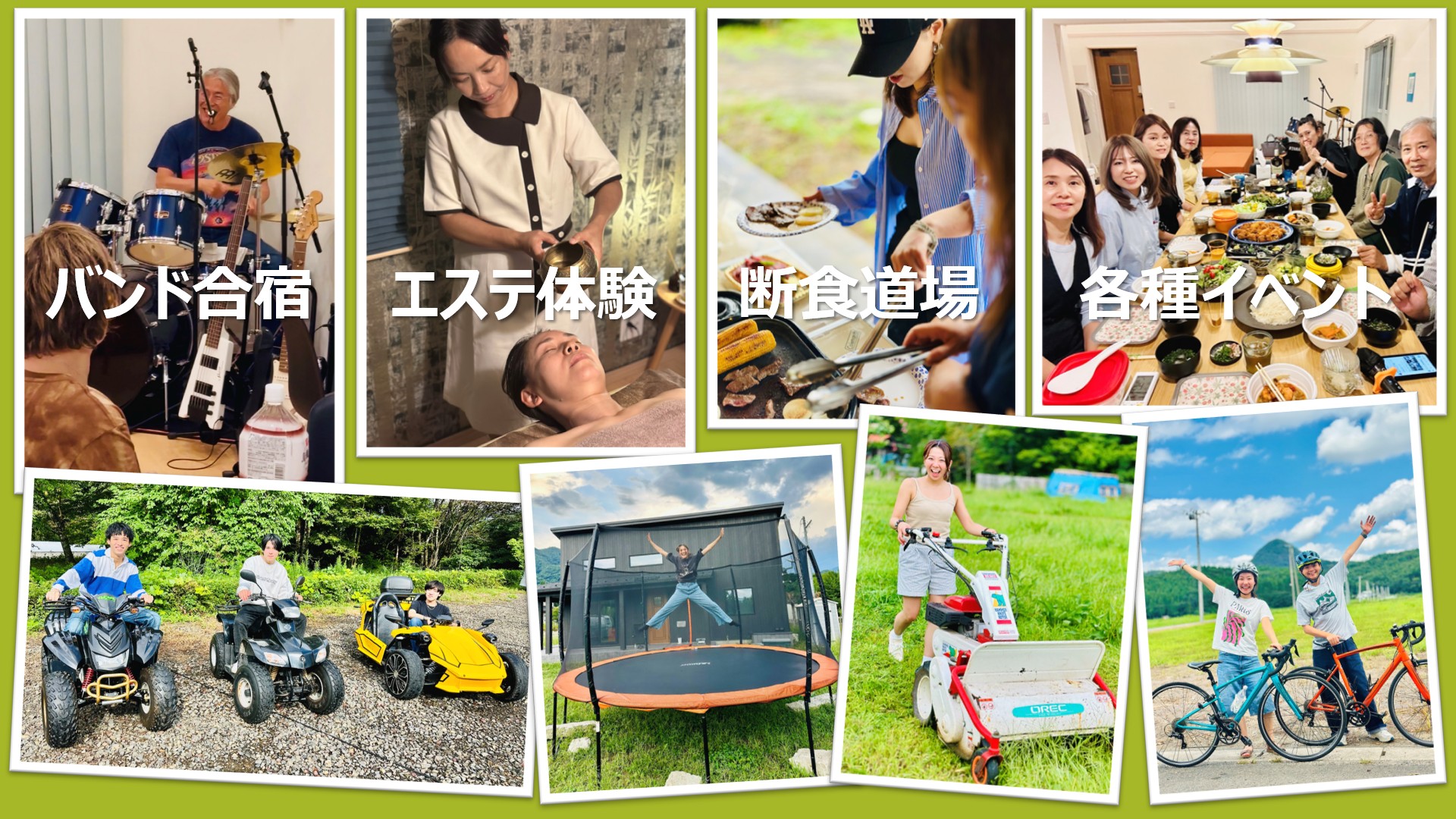 ドラムやアンプを完備し、音楽合宿や趣味の活動にも対応可能です。屋内でも多彩な用途に活用できる設計。バンド練習やワークショップにも最適です。
